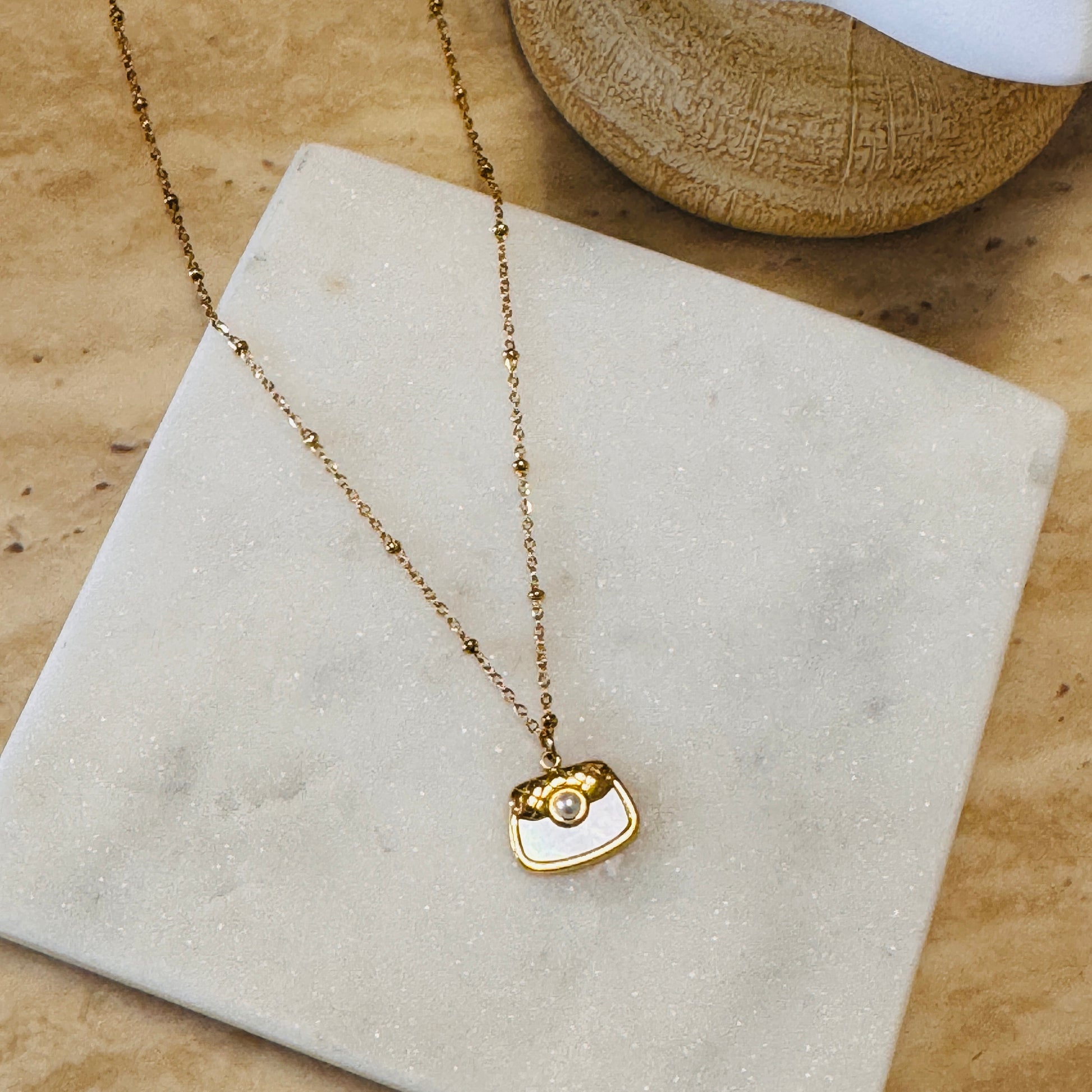 Cadena con dige forma de cartera y perlas Stainless Steel